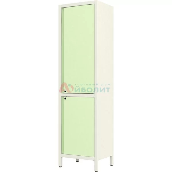 Краткое описание: Каркас выполнен из стали толщиной 0,8 мм, с полимерно-порошковым покрытием. Шкаф состоит из двух секций. Верхняя секция оснащается распашной дверкой, за которой расположены регулируемые полки (3 шт.) Дверка фиксируется магнитом, запирается на замок. Полки регулируются по высоте при помощи съёмных полкодержателей. Дверки и полки выполнены из металла с п/п покрытием.