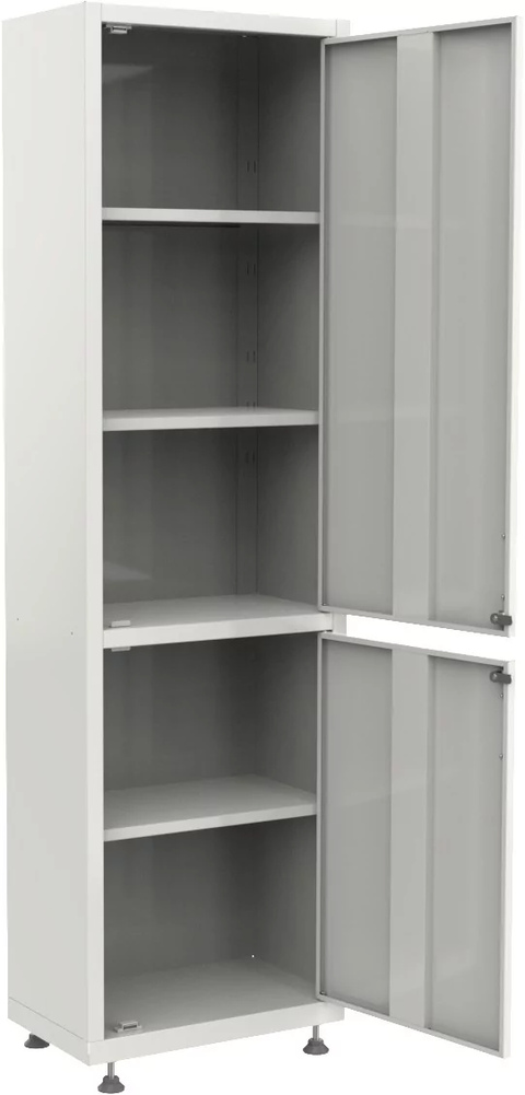 Корпус шкафа ШМ изготовлен из листовой стали при помощи сварки. В наличии регулируемые ножки, которые придают конструкции максимальную устойчивость. Покрытие – износостойкое, моющееся, порошково-полимерное.