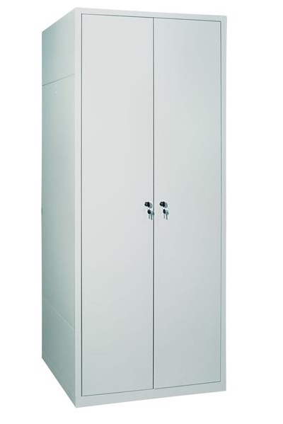 Конструкция шкафа является сварной из стали 0,8 мм толщиной. Покрытие корпуса выполнено способом порошковой покраски с добавлением полимерных материалов, серого цвета. Высота изделия составляет 1,8 м, ширина 0,8 м, глубина 0,5 м. Корпус установлен без ножек. Шкаф используется для хранения следующих материалов:
